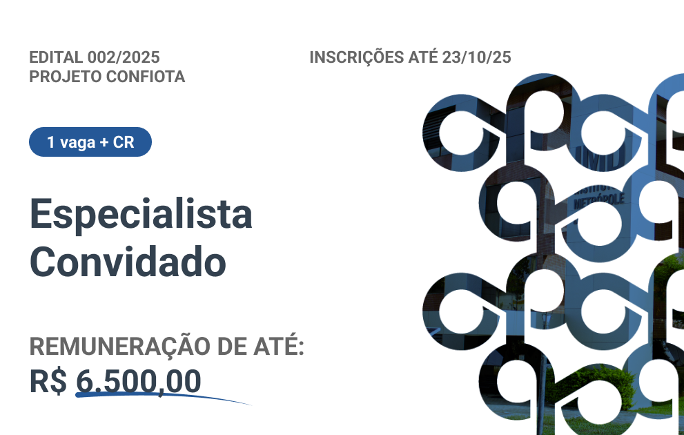 O Instituto Metrópole Digital (IMD/UFRN) prorrogou as inscrições da seleção de colaboradores para a secretaria de seus Cursos Técnicos. Os interessados têm agora até o dia 11 para se inscrever na seleção, que oferece uma vaga, mais cadastro reserva, para bolsista de apoio administrativo e financeiro.